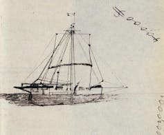 Tom Dudley’s own sketch of their boat, the Mignonette. Wikimedia Commons.